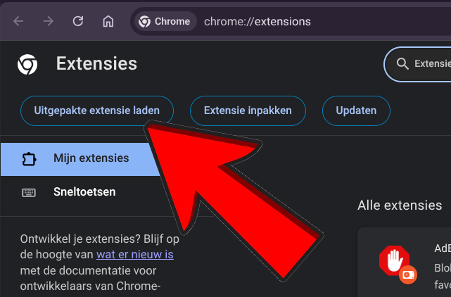 Klik dan linksboven op "Uitgepakte extensie laden".