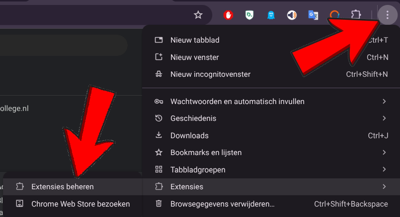 Klik hier op "Extenties" en dan "Extenties beheren".
