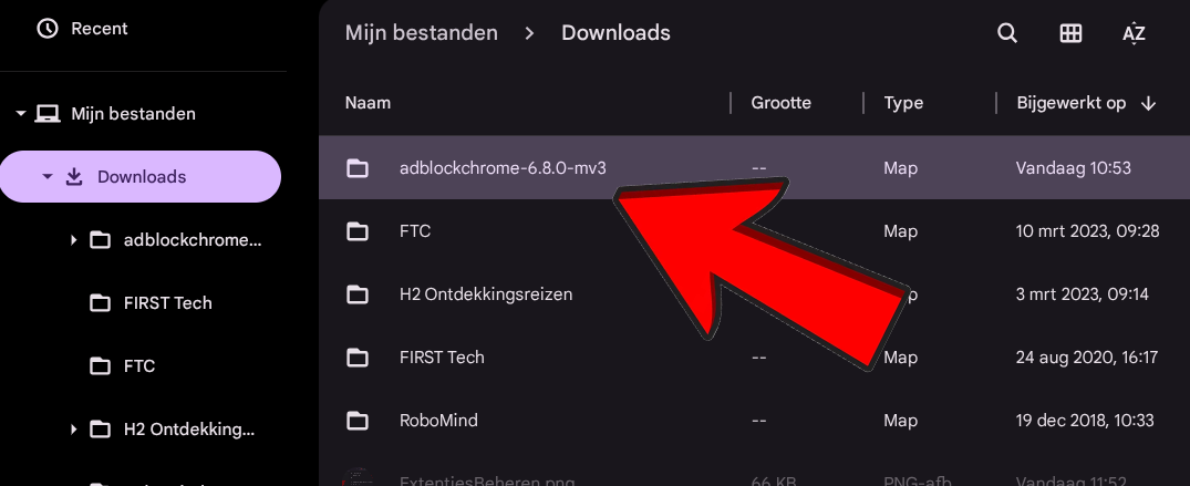 Klik nu op de uitgepakte map "adblockchrome-6.8.0-mv3".